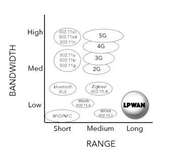 The technology is still in its infancy stage but shows great potential. LPWANs fill a gap that current radio technologies have not yet been able to fill (Vogt, 2017). The LPWAN technologies are meant to complement cellular (2G, 3G, LTE) and wireless technologies (WiFi, Bluetooth, etc.) by enabling the connection of a large number of devices at a low cost (both in terms of hardware and infrastructure), with long range connectivity and significantly less power consumption.